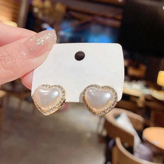 2021 Nya koreanska pärlörhängen med hjärta för kvinnor Söt blomma Zirkon Geometriska örhängen Flickor Partysmycken