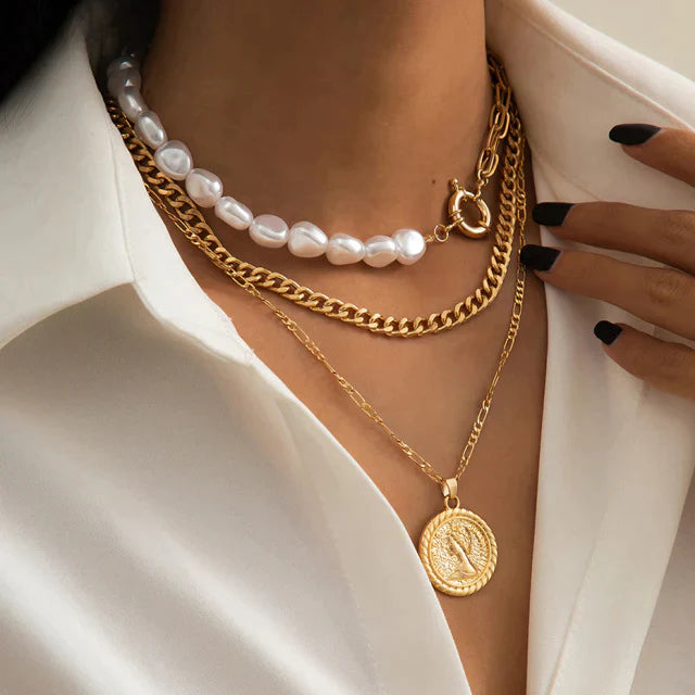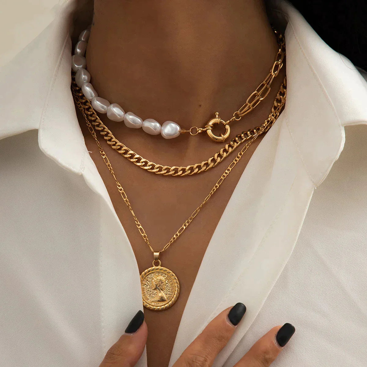 Goth barock pärla mynt porträtt hängsmycke halsband för kvinnor vintage flera lager länk kedja halsband punk estetiska smycken 2021